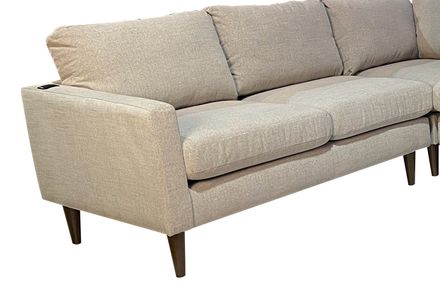 Personalize your space and style with the Trafton sectional. This mid-century modern sectional dons sleek track arms featuring convenient USB ports on each end, perfect for charging all of your devices. Loose back cushions filled with premium pillow fibers, and reversible seat cushions for added flexibility.Read More