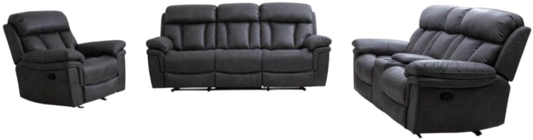 Create a warm, inviting space with this 3-piece manual reclining living room set. Featuring a sofa, loveseat, and glider recliner, this coordinated set offers smooth manual reclining, gentle motion, and plush cushioning for comfortable everyday relaxation.Read More