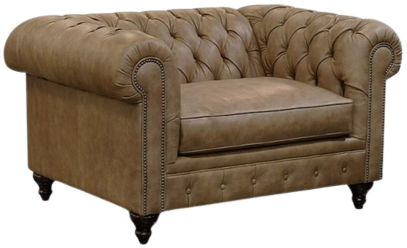 Our Rondell collection is our interpretation of the iconic English Chesterfield. This classic style features a beautifully tufted back and inside arm, simple front rail with button accents, a large rolled shelter arm accented with optional petite antique bronze nail heads, and an intricate turned wooden leg.Read More