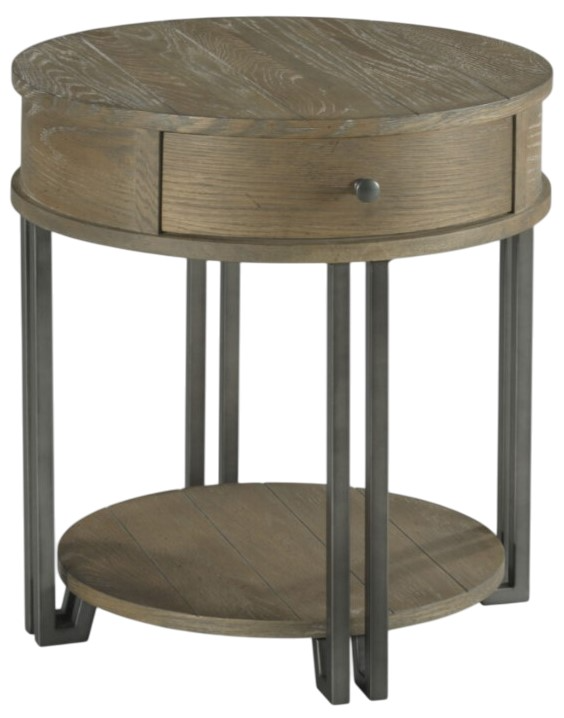 The Saddletree brown round end table is crafted from Rubberwood solids and oak veneers in a rich Saddletree Brown finish. Featuring one drawer and a lower shelf, it provides practical storage while its round shape and industrial-rustic design make it a versatile, stylish addition to any living room.Read More