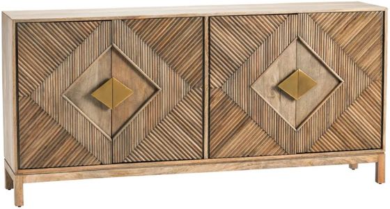 The Crestview Collection Brookline Sideboard has a striking look with carvings that create a diamond shape. Made of wood, this traditional sideboard has four doors and two cable management holes. The medium-brown finish is accented by the gold, diamond-shaped door handles.Read More