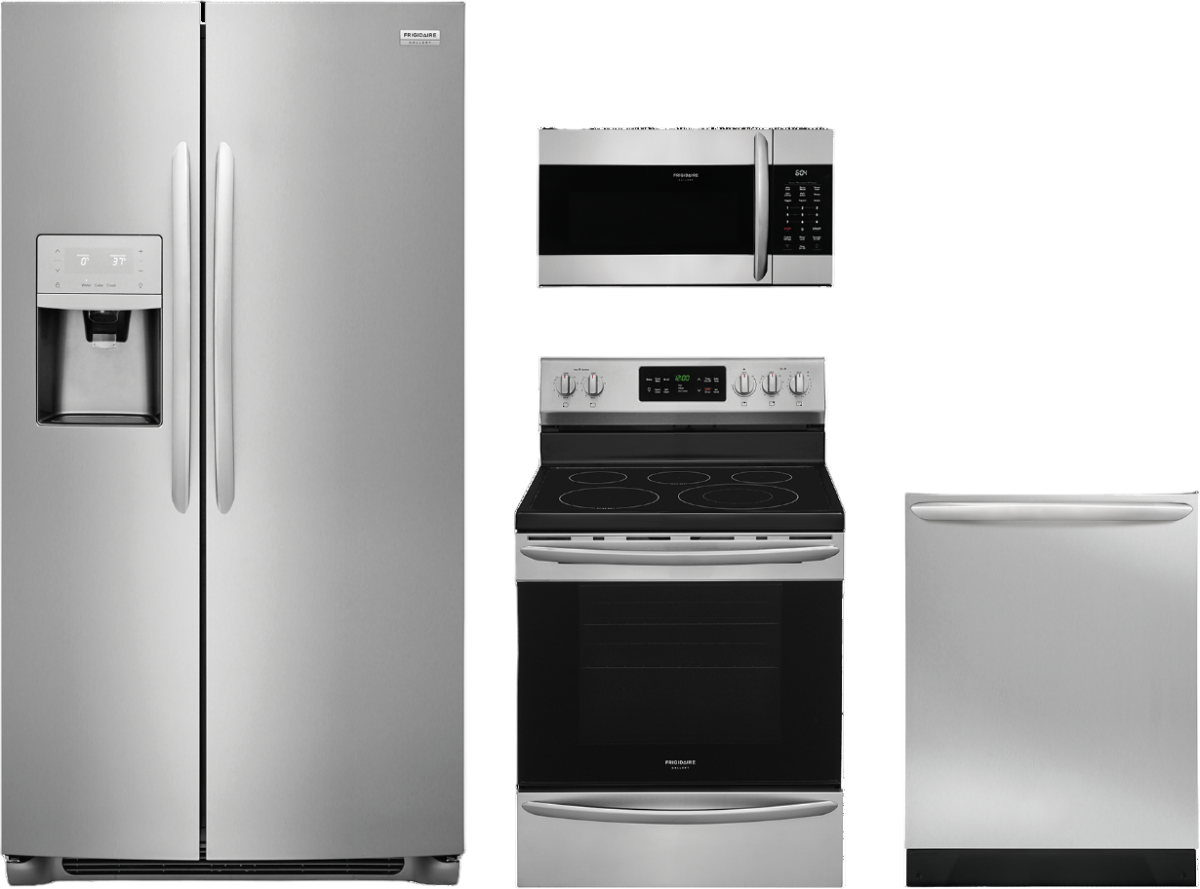 Frigidaire Gallery® 4 Piece Kitchen Package-Stainless Steel with a side-by-side refrigerator, free standing electric range, built in dishwasher and over the range microwaveRead More