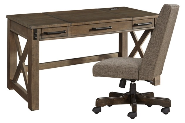 You deserve a touch of indulgence—especially when you’re hard at work. That’s what makes the Aldwin home office desk and chair set alluring. The lift-top desk is rustic farmhouse living at its best, with crossbuck styling adding flair and industrial brackets incorporating an industrial twist.Read More