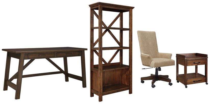 Leaning toward a casually cool look with a touch of rustic industrial flair? This home office set with canted legs takes a fresh stance on style. Saw marks infuse a touch of rich distressing.Read More