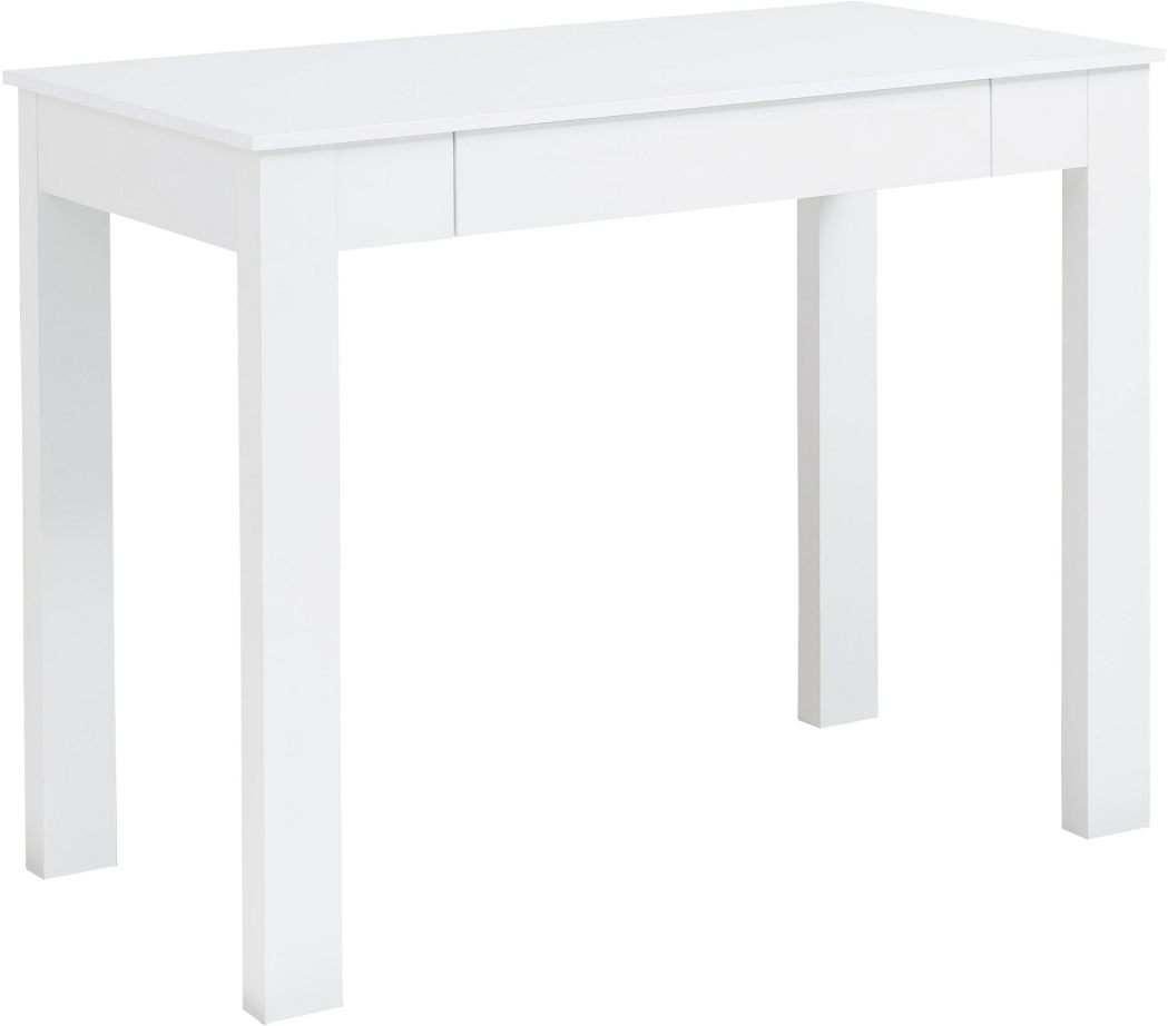 H410-10 desk is made with solid wood legs, engineered wood substrate and veneer. H410-10 desk features a clean linear design, parson's style legs and a center drawer with ball bearing side glides. Assembly required for this product.Read More