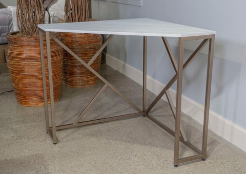 Barchoni Home Office Corner Desk features white/gold color, contemporary style, Barchoni collection.Read More