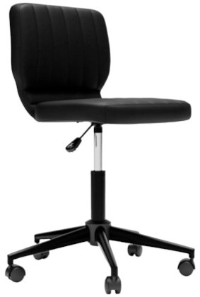 The finishing touch to any home office, this contemporary office chair offers comfort and style. The chair features a cushioned seat and backrest with a clean contoured shape, trimmed with a brilliant chrome-tone metal finish. Upholstered in faux leather, this chair pairs perfectly with any space.Read More