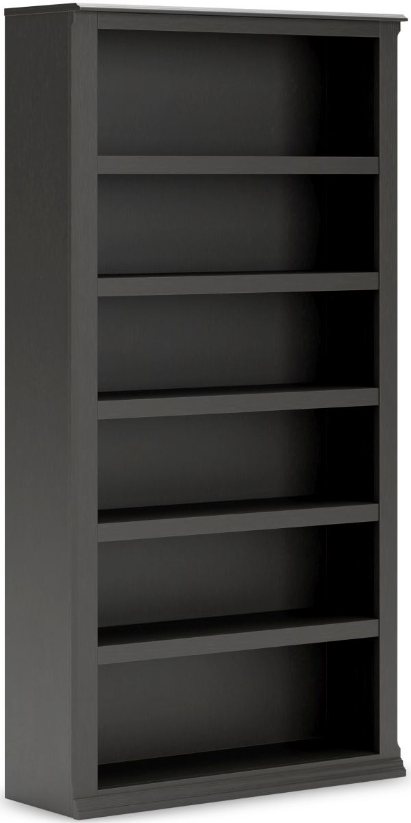 Make a style statement with this large bookcase. Its traditional design is updated with an on trend vintage black finish. The bookcase's five shelves add up to a well-organized workspace.Read More