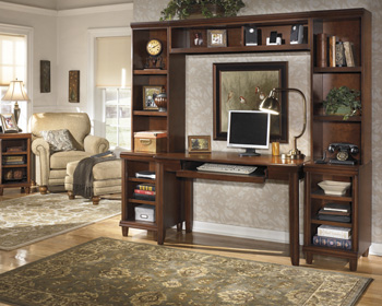 With the modular design that adapts perfectly to any home office along with ample storage space, the “Daleena” home office collection features a rich brown cherry stain finish that flows beautifully over the half round pilaster accents and rounded feet to create the elegant look of traditional styled furniture.
