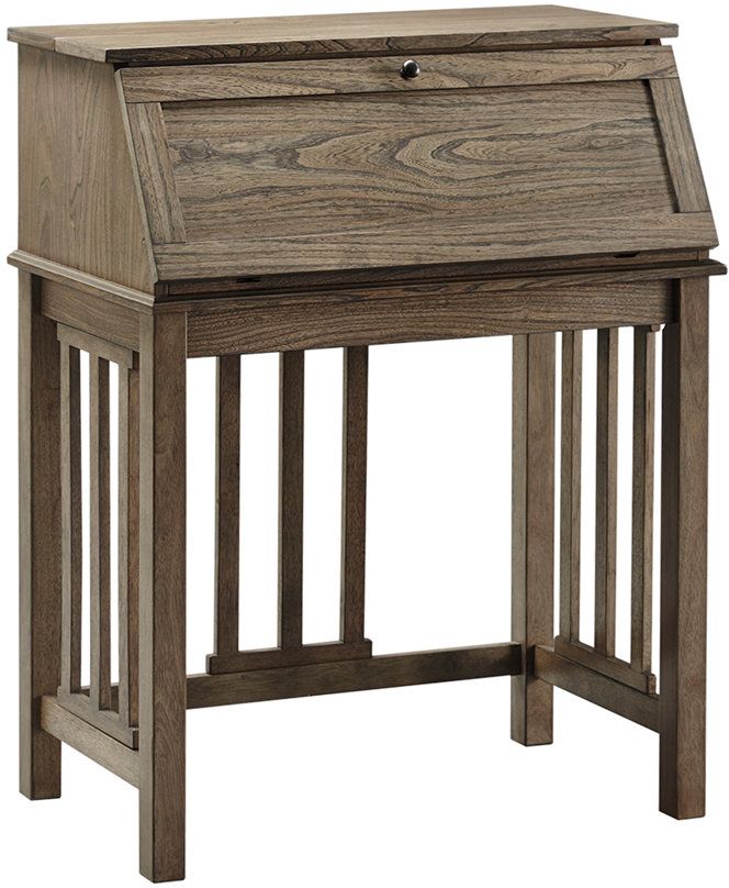 Short on room but long for a home office solution? The space-conscious Dexifield home office drop desk simply works on so many levels—providing the desk space you need, only when you need it, along with cutouts for wire management, drawer storage and file space. Soft, grayed chestnut-tone finish over elm veneer beautifully lightens the mood. Add a swivel stool of your choosing and you’re in business.