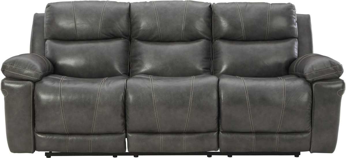 When you curl up in the Edmar power reclining sofa with adjustable headrest, you won't want to get up. It has genuine leather throughout the seating areas, and a neutral charcoal gray hue hue that pairs up comfortably with most color schemes. This cozy sofa will be your go-to spot for watching TV, reading, or just closing your eyes and drifting off to sleep.Read More