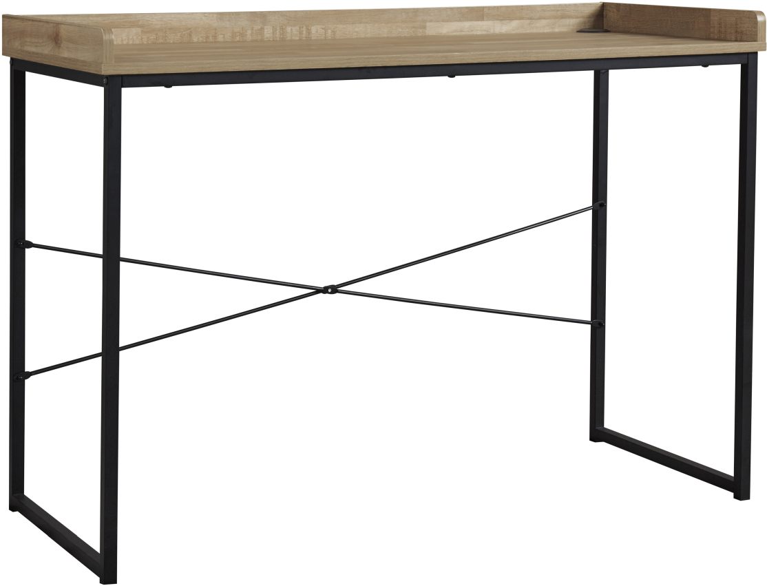 Loving your workspace is easy with the replicated natural wood finished top and black finished metal base of the Gerdanet home office desk.