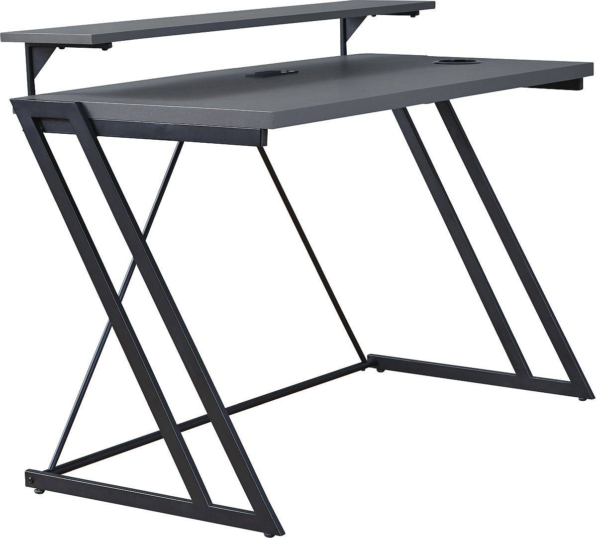 Ultra mod. Work smarter—and look cool doing it— with the new-age efficiency of this desk. Streamlined design is accented with a durable melamine top and mouse trackable inset PVC panels. A clever raised monitor ledge is form and function working perfectly together. Assembly required for this product.Read More