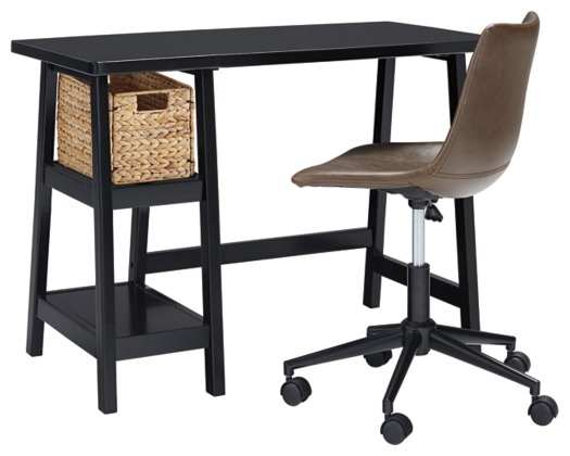 Space-challenged rooms call for simply chic style—like the Mirimyn small home office desk in black. Clean and lean, this desk’s classic trestle design always works. A heavily distressed finish captures the essence of chipped paint, giving this wood desk a charming salvaged quality.Read More