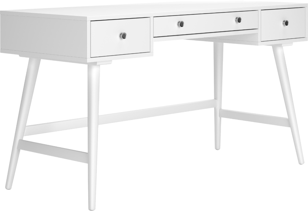 If you're a lover of minimalism and mid-century style, it will be easy to picture this home office desk in your workspace. Sporting a crisp white finish, this piece serves up handy storage with three drawers accented by round metal knobs. With this desk, form and function are never far apart.Read More