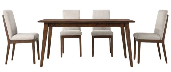Elegantly casual style arrives in the dining room with the Canton 5-piece 72" upholstered side chair dining set. Influenced by mid-century modern design and ready to seat up to six, this set showcases a beautiful butcher block top layup and tapered solid wood legs, exuding both elegance and warmth.Read More