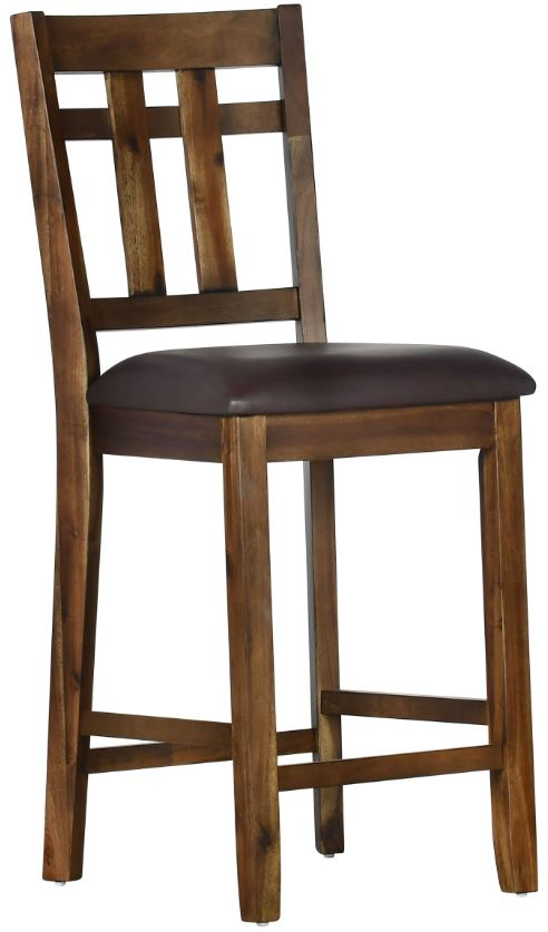 These Saranac Counter Chairs are great to use with the Saranac 5-Pack Dining Set or to use on their own at a counter or bar. Rustic styling in a mocha-finish, these Counter Height chairs look beautiful with the solid wood table Saranac table that features plank construction and a timber-beam platform base.Read More