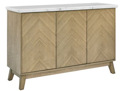 The Vida Marble Top Server showcases clean modern lines and a sleek knife-edge marble top for a refined look. Soft-touch doors eliminate visible hardware, highlighting the burnished blonde ash veneers in a stunning chevron pattern that exudes contemporary sophistication.Read More